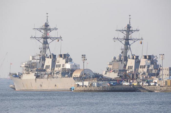 ドッグの大型クレーンの近くにもイージス艦のトレードマークが見えたが、衝突の傷跡までは、とても見えなかった。