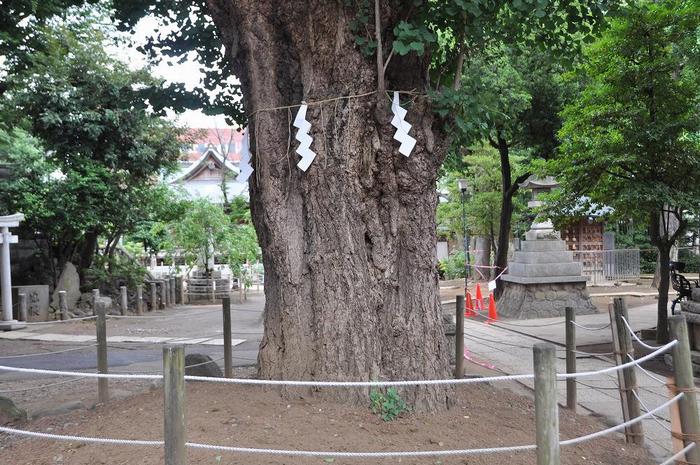 @ 正面鳥居から入った境内には、注連縄を付けた御神木。