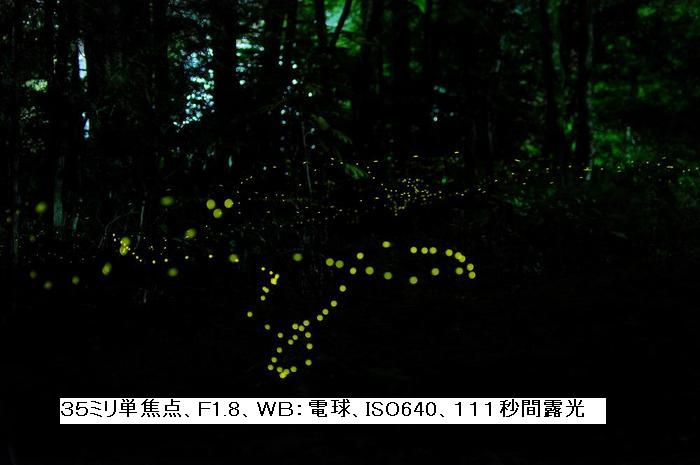 二岡地区でのヒメボタル撮影は、4年目・合計7回目となる。ところで、私達(相棒と2人)は、数年前に知った空き地を飛翔するヒメボタルを被写体とする事にした。
