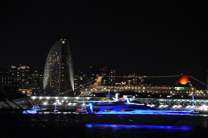 そして、トワイライトジュエリーポート・・・イルミネーションで飾られた船が山下公園前海上を走る。 ⇒ 動画で(クリック) |