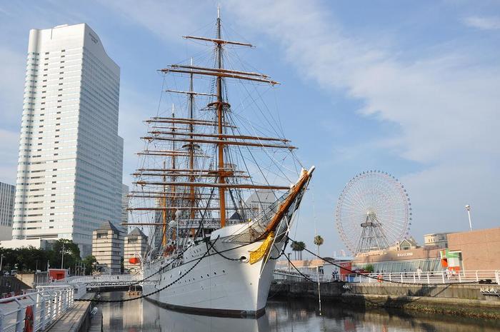 帆船日本丸が最も美しく見えるのがすべての帆(29枚)を広げた優雅な姿は「太平洋の白鳥」と呼ばれています。