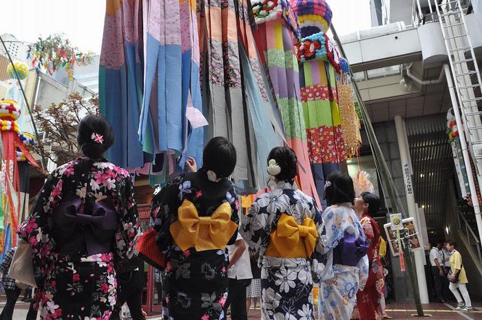 今度は、全長900メートルの『一番町通り七夕飾り』となり、「一番町四丁目商店街」と「ぶらんどーむ一番町商店街」そして「サンモール一番町商店街」を一直線に結ぶ。
