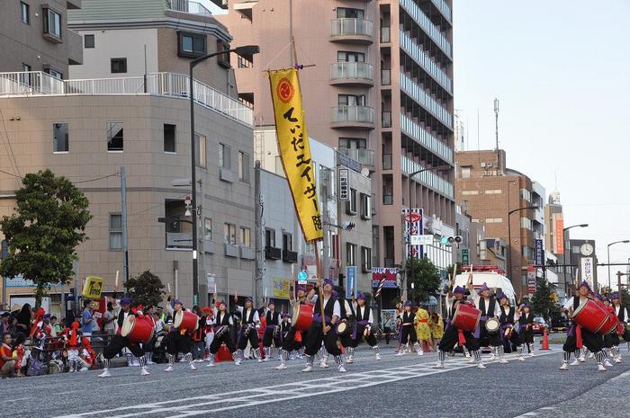 今までに「阿波踊り」や「よさこい」や「エイサー」と色々見たが・・・・ 「てぃだエイサー隊」の演技入場で注目を浴びたのは、電動車椅子の演技者がいた事。 演技のクライマックスでは、電動車椅子を中心にして盛り上がっていた。