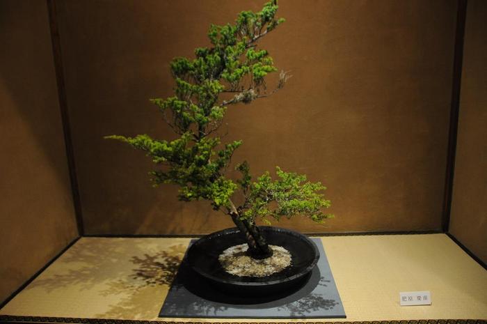 質問して見ると、「四角い板を使い、裏から太い枝を釘止めして、水盤に入れてから、白い小石で目隠しをする」・・でした。