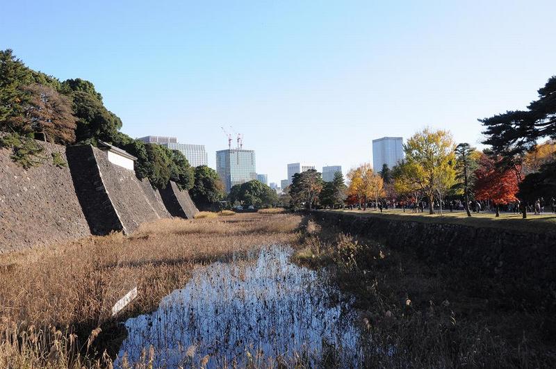 途中の西桔橋(にしはねばし)を渡って、皇居東御苑に抜けるコースもある。