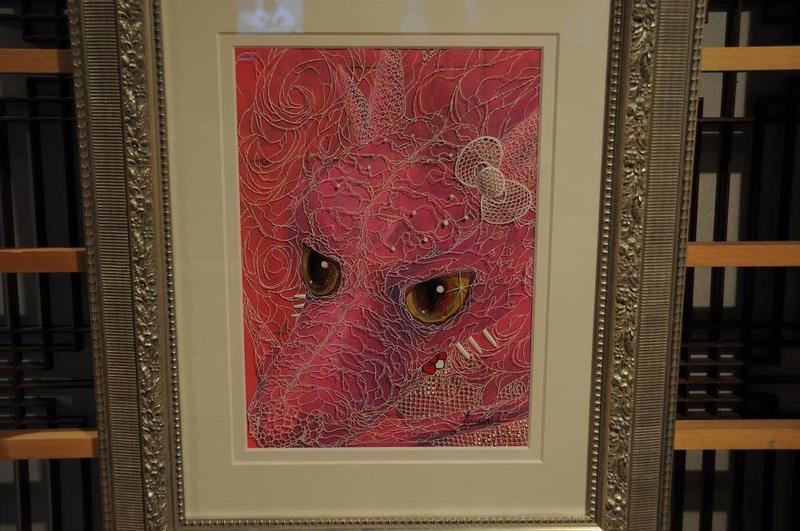その背景に配するのはピンク色の絵画であったり、あるいはカットされた切絵そのものにアクリルやメッキ調合成樹脂で着色したりする。