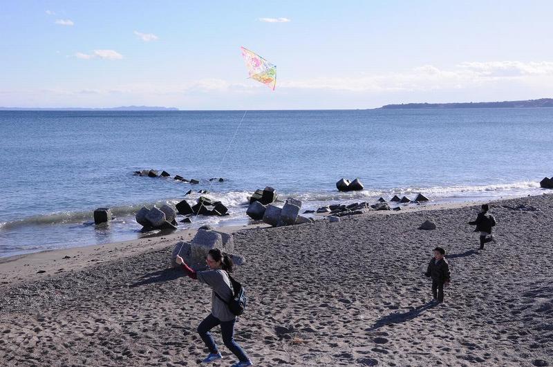 が・・・凧揚げには強い風が欲しいところだ。野比海岸を散策していると、凧揚げに興じる人達がいた。
