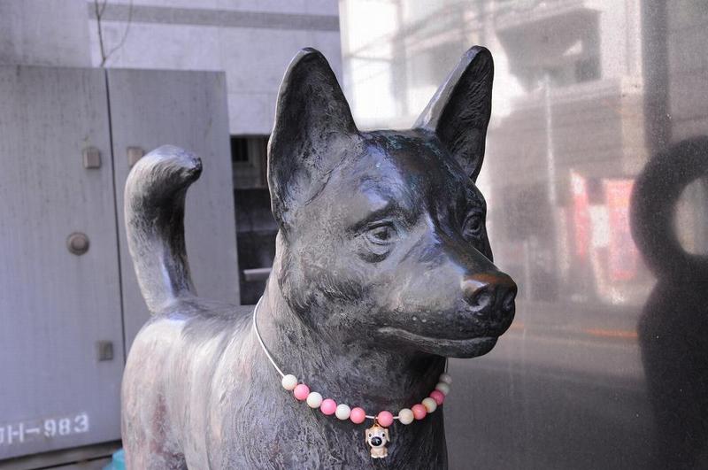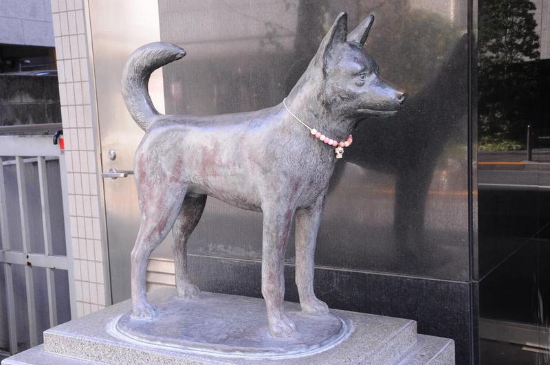 ちょうど中間点あたり、右側にビルの玄関口に銅像が設置されていた。