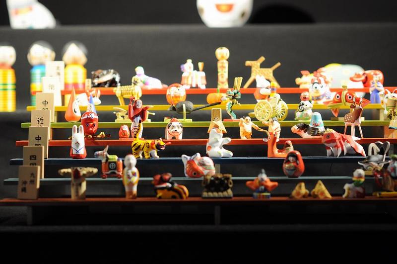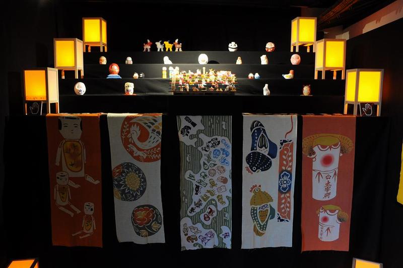 この部屋には、各県を代表する玩具かどうか分からないが、県ごとに探してきた玩具が並び、手ぬぐいも展示されている。
