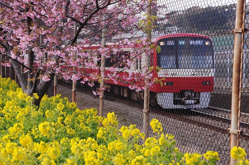 電車と菜の花と河津桜 ・・・なら『三浦海岸』のみ。