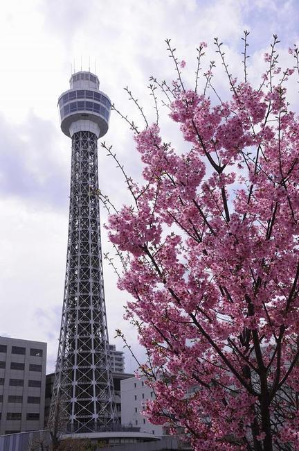 近年植樹された「横浜緋桜」も将来的には、横浜マリンタワーとのコラボができるかも。