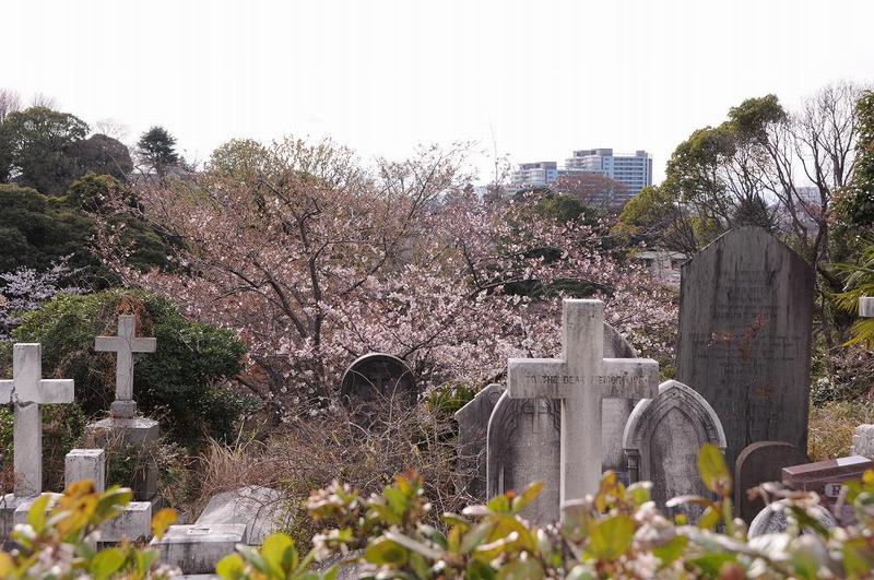 道路脇の歩道と境を作る植木が、背も高いし、幅も広いので、カメラを向けるとお墓の全景が写せない。 桜の季節だから、なんとか「お墓とサクラ」が絵になるものの・・・・、あまりお薦めの撮影スポットでは無い。