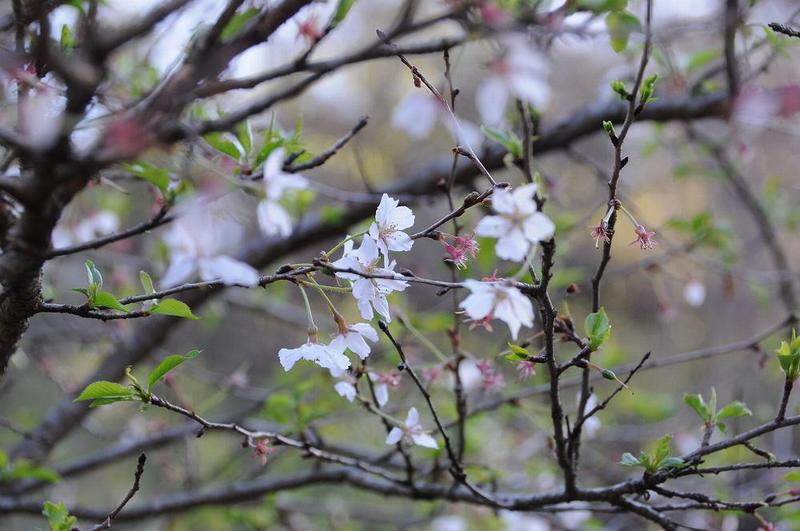 小ぶりな白い桜のような花がパラパラと咲いている。