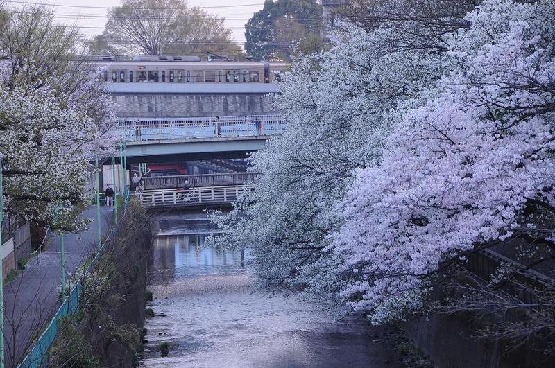 その1つに「成城学園の敷地近くを通過する時」・・・学園の敷地内に『仙川』が流れ、両岸から伸びた桜の枝で仙川が覆い被さっている景色だ。
