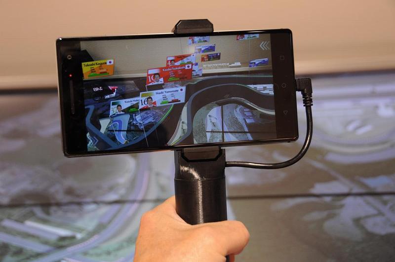 「ジオスタ」と言い、目の前に鈴鹿サーキットの平面模型みたいな物が有り、手持ちのスマホを持たされた。
