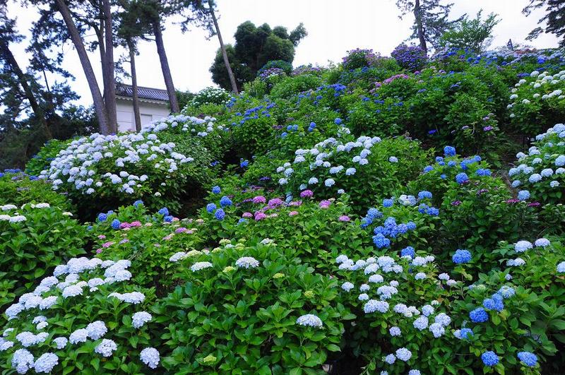 小田原城址公園でも、例年より10日ほど早く開花したあじさいが見頃を迎えていた。