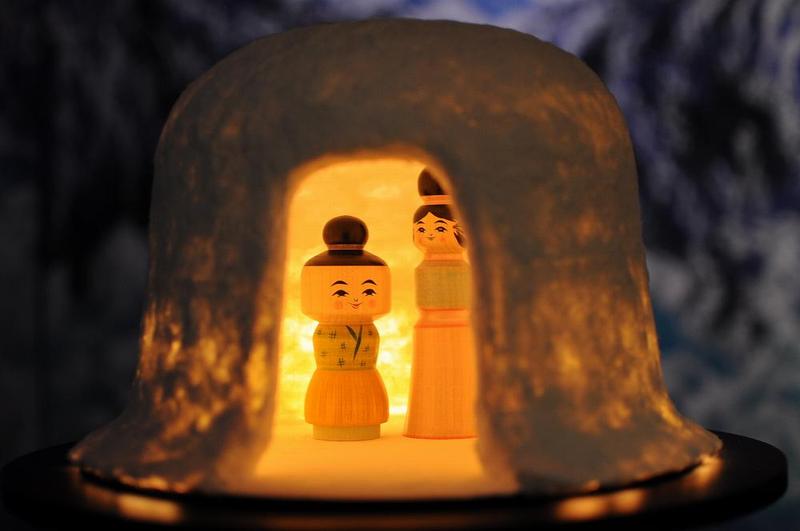 そして、和紙で作った「かまくら」の中に、「石巻こけし」が微笑んでいた。