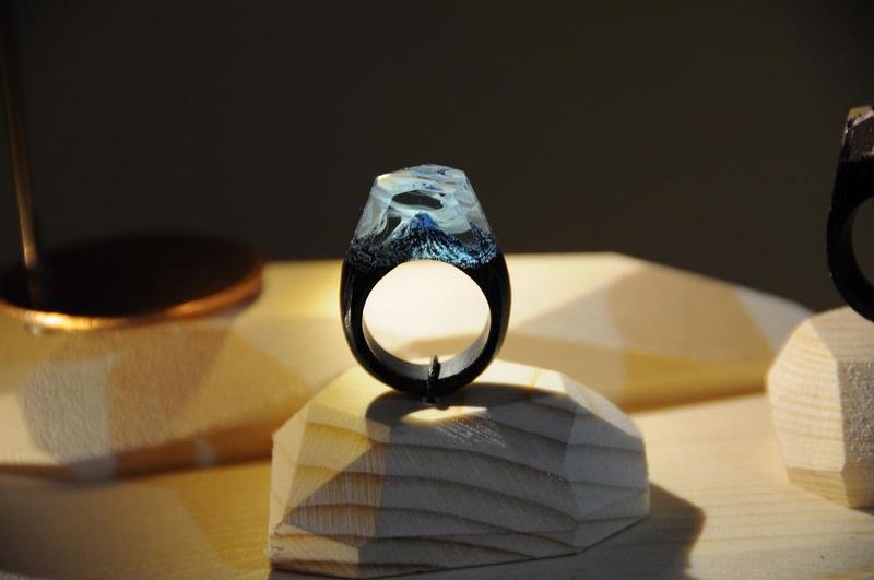そして、ハンドメイドの指輪は、数種類の木材とジュエリーレジン(樹脂)で創られていて、自然の美しさを閉じ込めた世界に一つだけのジュエリーです。