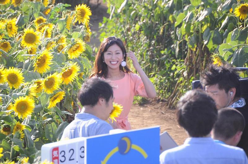 神奈川県座間市のひまわり畑・栗原会場からの中継。