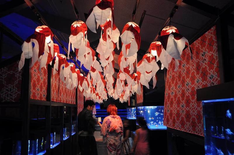 100個の金魚ちょうちん(金魚ちょうちん発祥の地・山口県柳井市の職人が手作業で作った)が照す全長約100メートルの金魚展示エリアがメイン会場で、色も形もさまざまな約20品種、約1000匹の金魚を展示している。