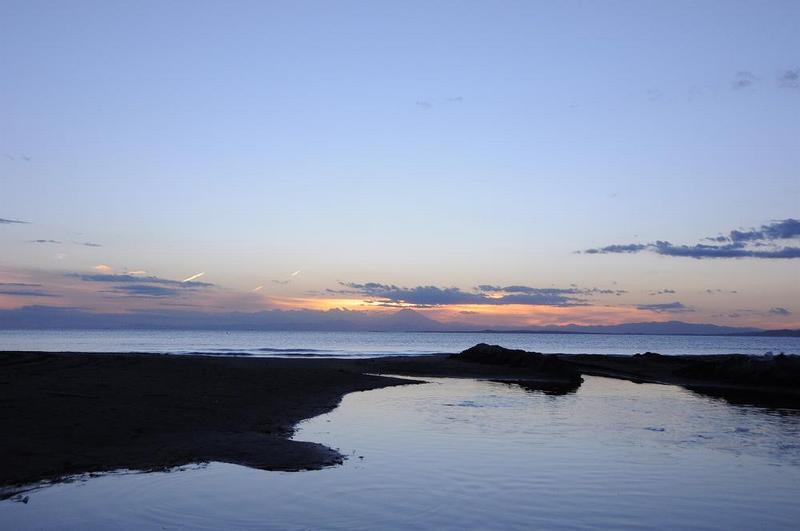 動画撮影で、魚の跳ねるのが判るかどうかだ。 ⇒ 日没前の入江風景 ⇒ 日没後の入江風景