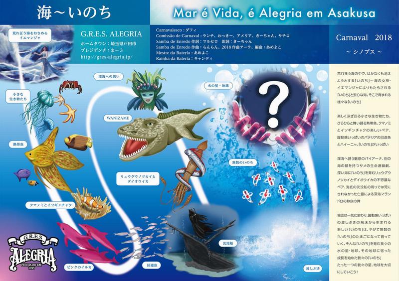 http://www.asakusa-samba.org/index.html「ALEGRIA」チームは、S1リーグに所属するので、150名以上の大規模なチームでアレゴリアと呼ばれる山車とブラジル本場の衣装を着用して行われる。