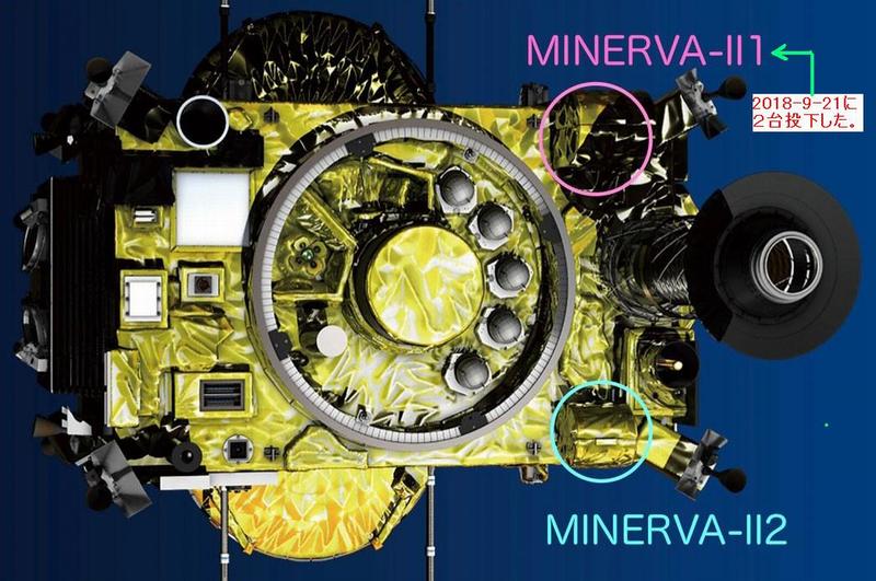 「はやぶさ2」は、3台の『ミネルバU』を搭載しており、3台目の『ミネルバ-U-2」は来年投下の予定で、「はやぶさ2」号本体も10月下旬に「りゅうぐう」に着地し、試料の採取に挑む。 |