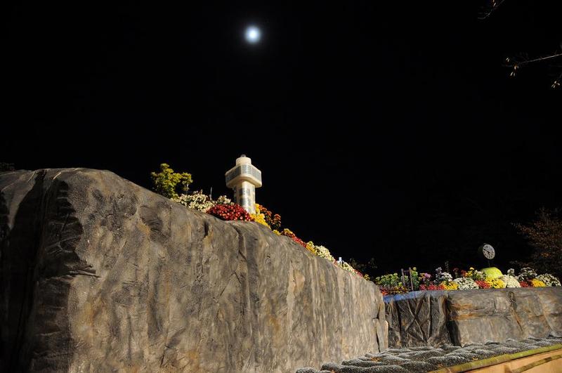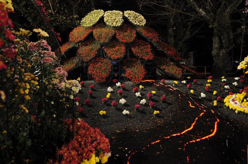 | 三島市の「楽寿園」で開催されている「静岡県最大級の菊まつり」は、昼間には入園料金の300円を必要としていたが、16時30分で一度閉園する。 17時からは、「ライトアップされた菊まつり」を無料で楽しめた。