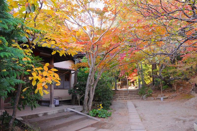 一番に取材したのは、「秋葉山量覚院」の真っ赤なモミジ・・・住職曰く、今年は台風21号の塩害で全体的に遅れているらしい。