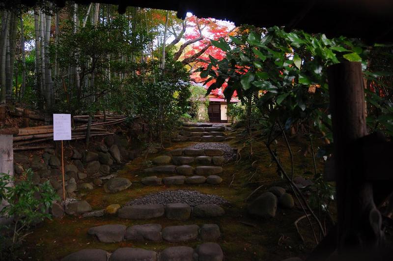 二番に取材したのが、「電力王」と呼ばれた茶人の松永の自宅(松永記念館)、三番に取材したのは「山縣有朋別邸の門(平日はクローズ)」、四番は大成建設創業者・大倉喜八郎別邸、五番は「皆春荘(清浦奎吾別邸その後山縣の別邸になる)」、六番に三井物産創業者・益田孝別邸らの紅葉を撮影する。 |