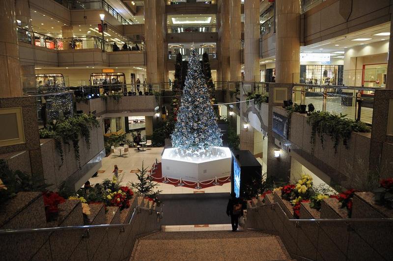 今年は雪が降り積もる姿をイメージした約8メートルの大きなクリスマスツリーで、ホワイトクリスマスの雰囲気を演出している。