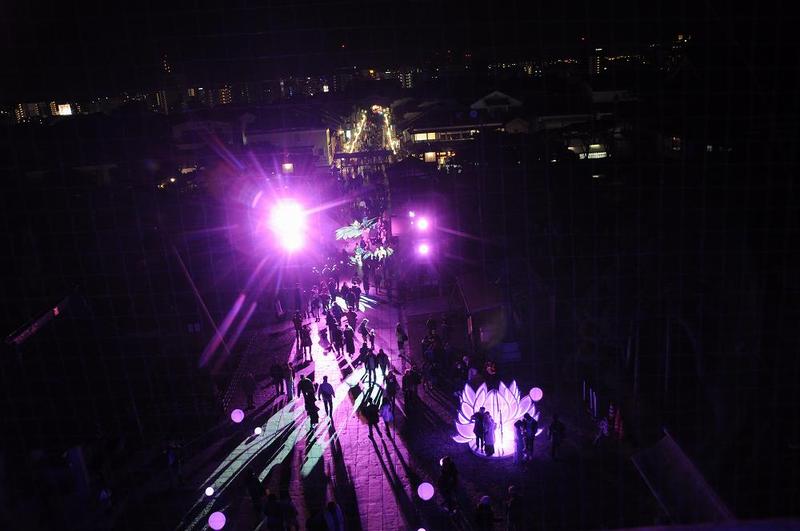 参道側に廻ると、参道のプロジェクションマッピングと長野駅までの表参道のイルミネーションも見えた。