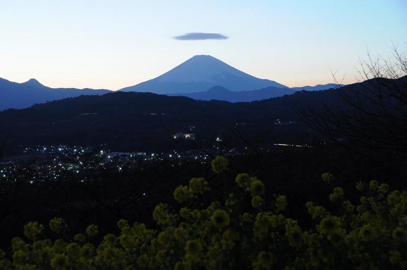 昼食兼朝食を済ませ、空を見上げれば、雲一つない青空、屋上から見える富士山にも雲が掛かっていない。日没後の富士山撮影を目的としているので、重い三脚を担いでの吾妻山登山。