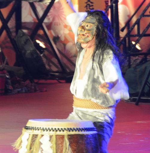 その間、打ち手は自由な形でミエを切るが、面に応じた身振り、身のこなしなど個性的な芸を入れるのである。