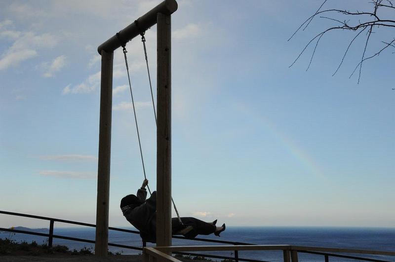 通称「空飛ぶブランコ」は、海を背景に写真を撮れば、まるで海の上に浮いているかのような一枚になる。