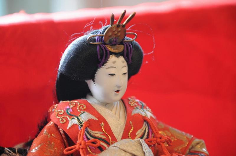 今回は、内裏雛と三人官女と五人囃子のセットだが、大正時代は人形類に贅沢禁止令があったのか、小型のお雛さまで有る。