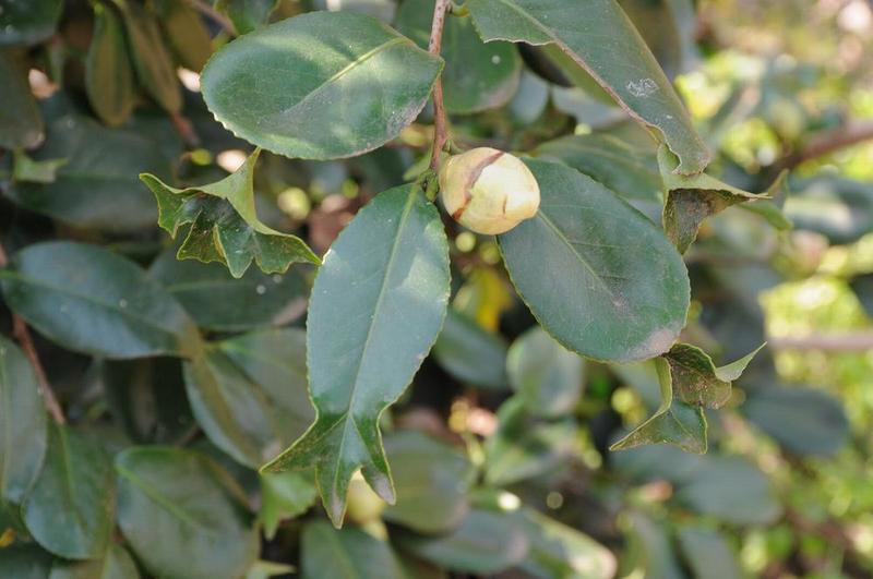 普通の「金魚椿」は、一枚の葉っぱで「金魚の尻尾」が出来るのだが、「葉っぱの下にへその緒が伸び、赤ちゃん葉っぱ」が有ったのだ。