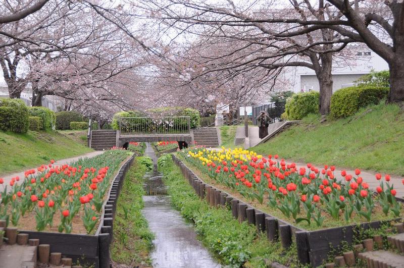その後、周辺地域の市街化が進み、都市に潤いを与える良好な水辺景観の創造と親水性の増進が強く望まれるようになり、あわや、並行して交通量の多い「緑産業道路」のために、曲がりくねった迂回道路になるかと案じたが、江川の上流に位置する都筑水再生センターから高度処理水を流し、せせらぎの回復を図るとともに、緑化のための植栽、遊歩道の設置を行い、四季折々の風情を楽しみながら、水辺を散策できる憩いの場として整備することとなった。 |