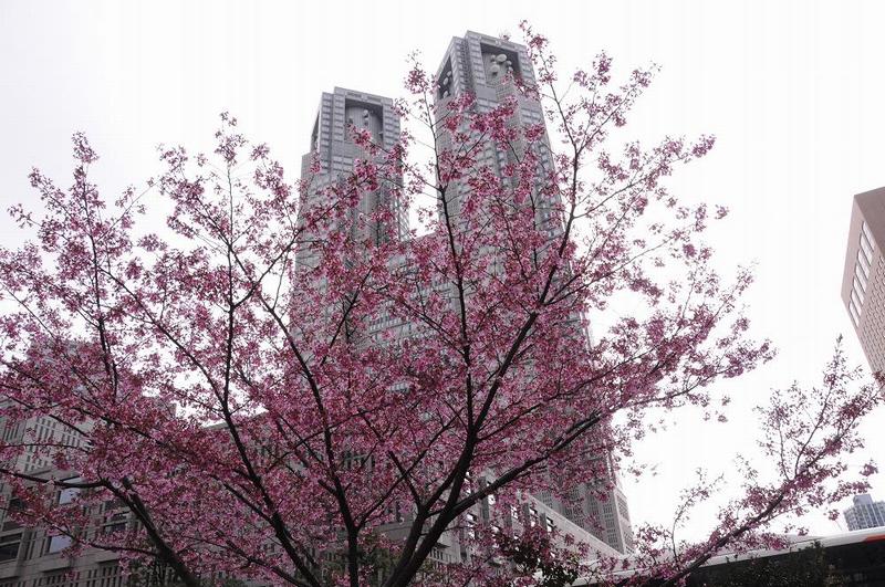 「ソメイヨシノ」も6〜7本有ったようだが、白い都庁の建物とマッチしていた。 |