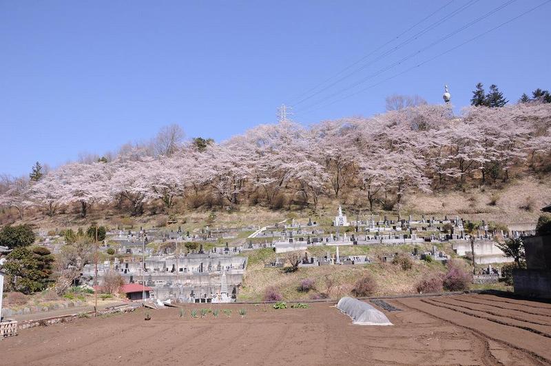 「津久井観音霊場第11番札所」には、墓地の上半分に桜の木が500本植樹されており、壮観な眺めだ・・・。