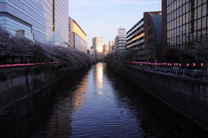 JR目黒駅から坂道を下りると、「さくらの名所・目黒川」にぶつかる。