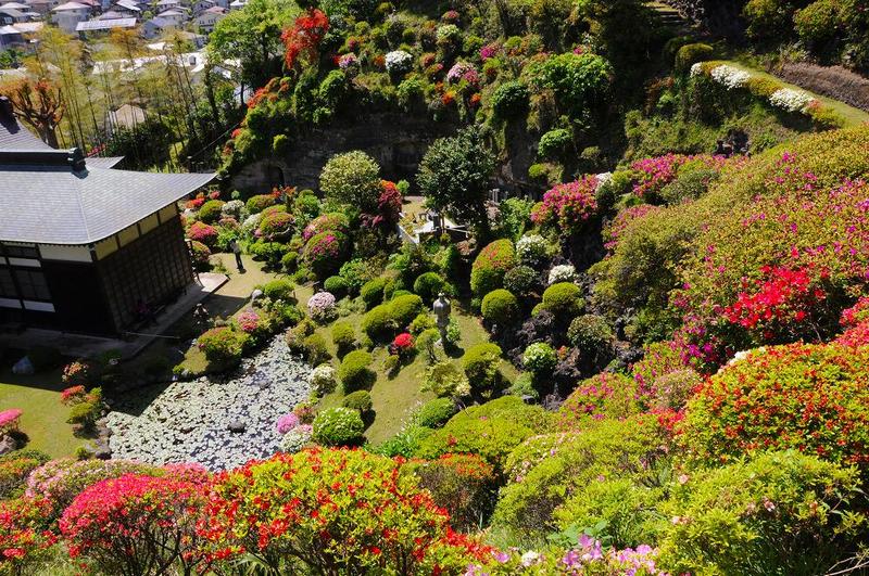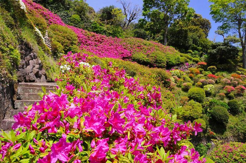 まず、鎌倉一と言われる「つつじ庭園」は、佛行寺の本堂裏手に、標高40〜50メートルの斜面を彩るつつじ。