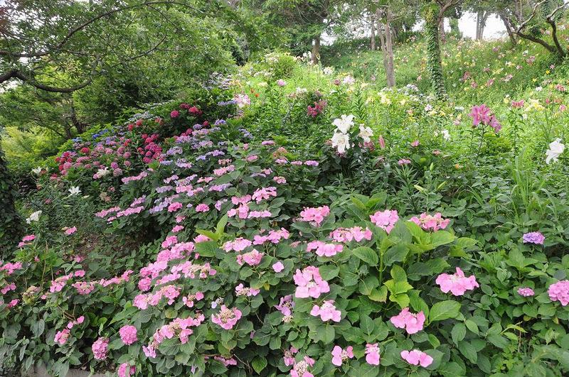 開園してから1ヶ月を経過、ゆりの花も見頃の終盤戦、一方、あじさいは「真花」や「擬似花」が咲き、まもなく終りを迎える。あじさいで「真花」や「擬似花」を知っている人は、物知りさんである。 ⇒ クリック |