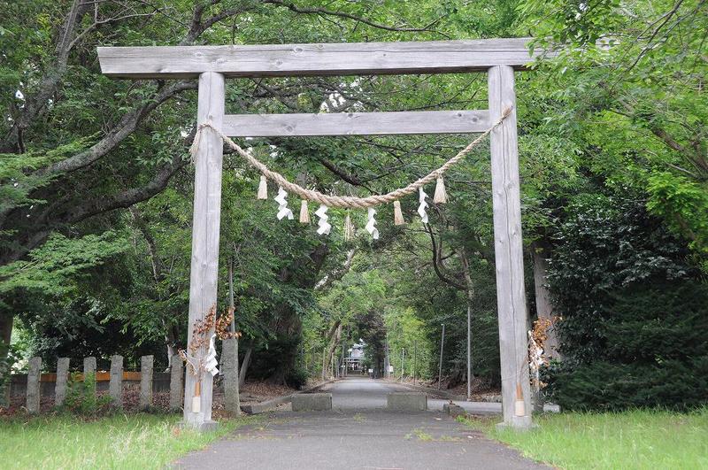 取り合えずは田舎道を歩く、バス停は改修道路のど真中に設置されており、不安になったがとりあえず鳥居を目指して進む。 長い参道を歩き、社が見える鳥居の前に、「苔のある場所を発見」した。 直径10メートの程だが縄で仕切りがされている。