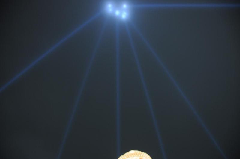夜空に伸びる6本の光はかつてあった大仏殿の柱をイメージした物だという。