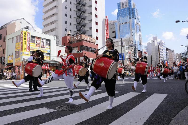 浅草国際通りのエイサーは、6チームの参加と、エイサーパレードは浅草国際通りの片側3車線の内、2車線を利用して演舞が行なわれている。 日中の暑い中、演舞のメンバーならずとも、見物人も汗だくでエイサーを応援している。