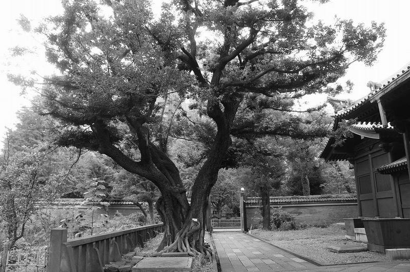 スダジイは大成殿前に有り、通路の傍なので良く分かるが、焼け後は良く見ないと分からなくなった。 |