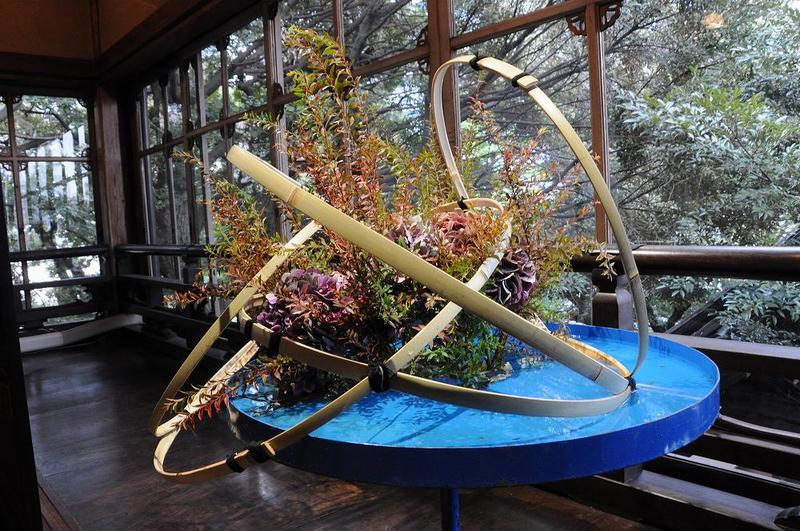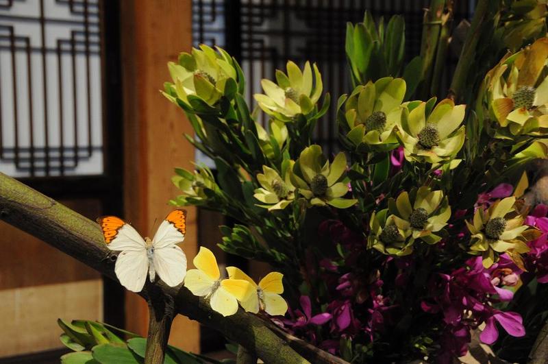 現在、三世家元澤井雅恵が継承、昨年も本物の蝶(チヂミ)を使用していましたが、今年はもっと大きな蝶を使用していた。日本華道院が、研究し、普及のために努力しているいけばなは現代自由華と呼ばれるものです。