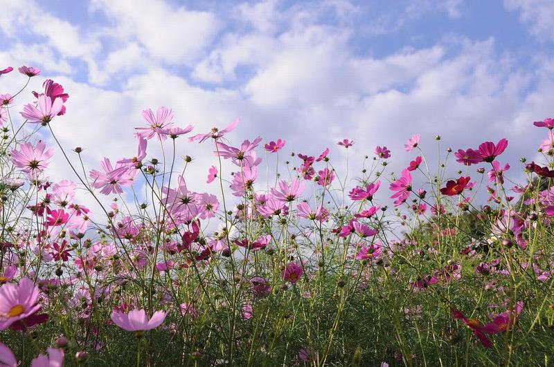 昭和記念公園の「花の丘」コスモス(400万本)の見頃は10月27日まで続く予想されるが、すでに7〜8割の見頃となっている今が写真を撮るにはちょうど良い。