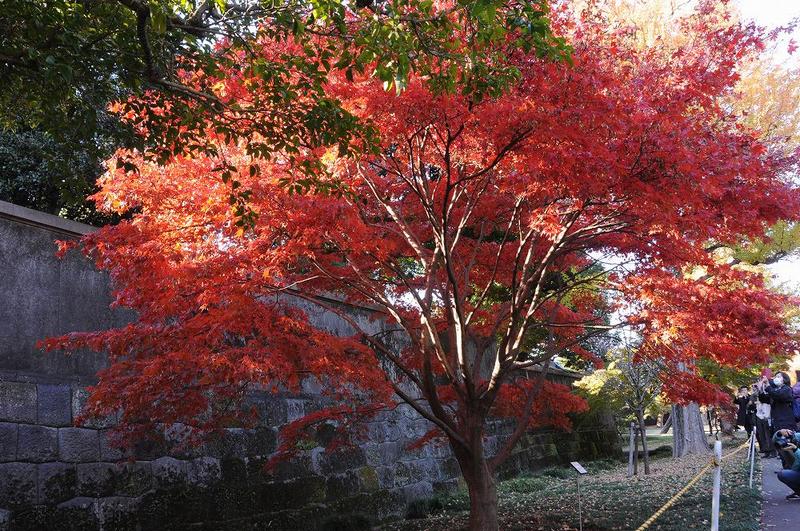 一般開放と言っても、セキュリティチェックは厳しく、ペットボトルも持ち込めない。 カバンやリックの中もチェックされ、金属探知機を体に当てられる。 さて、皇居の紅葉は、ちょうど見頃であった。